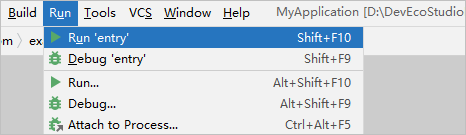 ,或使用默认快捷键Shift+F10(macOS为Control+R)运行应用/元服务。