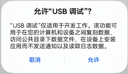 在真机设备中会弹出“允许USB调试”的弹框,单击允许。