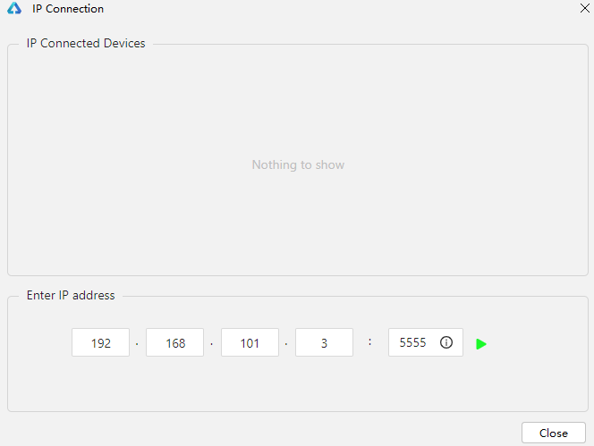 在DevEco Studio菜单栏中,单击Tools > IP Connection,输入连接设备的IP地址和端口号,单击