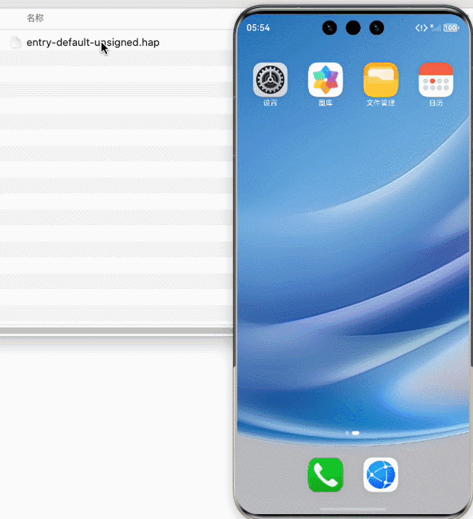您可以将本地的HAP包安装到模拟器上,只需要将本地的HAP包拖动到屏幕上即可进行安装,支持一次性拖拽安装多个HAP包。模拟器也支持安装包含HSP文件的应用,只需要将HSP和HAP一起拖动到屏幕上即可进行安装。