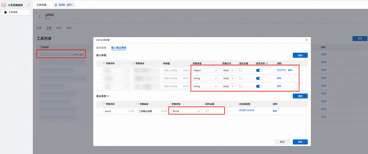 工具检查:保存后切换至"工具"页签。若基本信息配置无误,工具列表中会根据基本信息内容自动生成1条/多条信息。