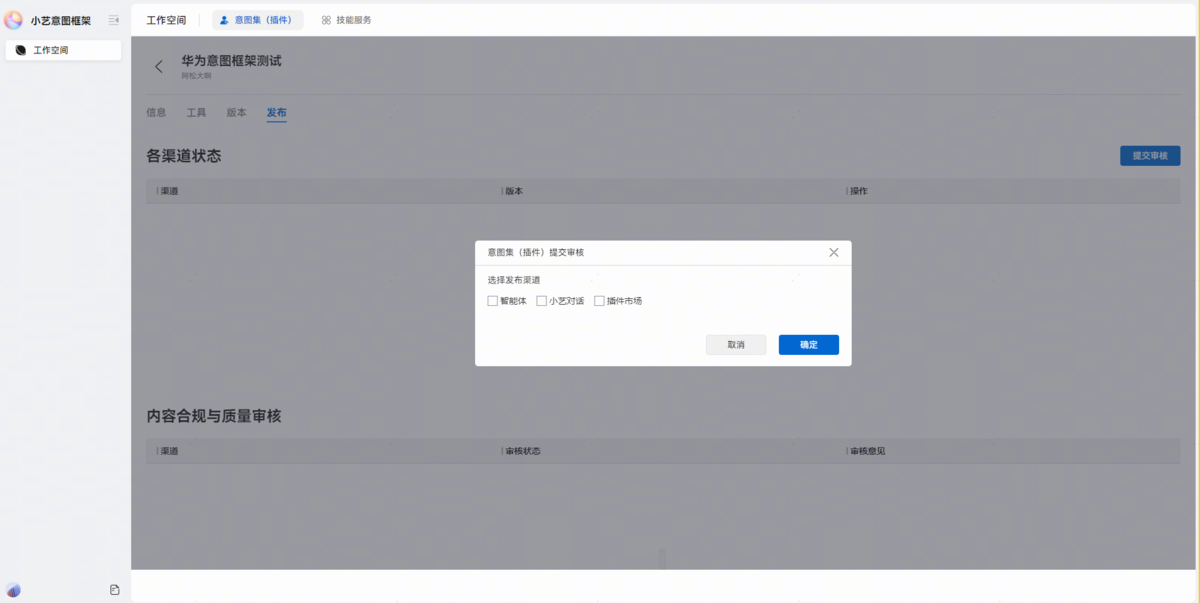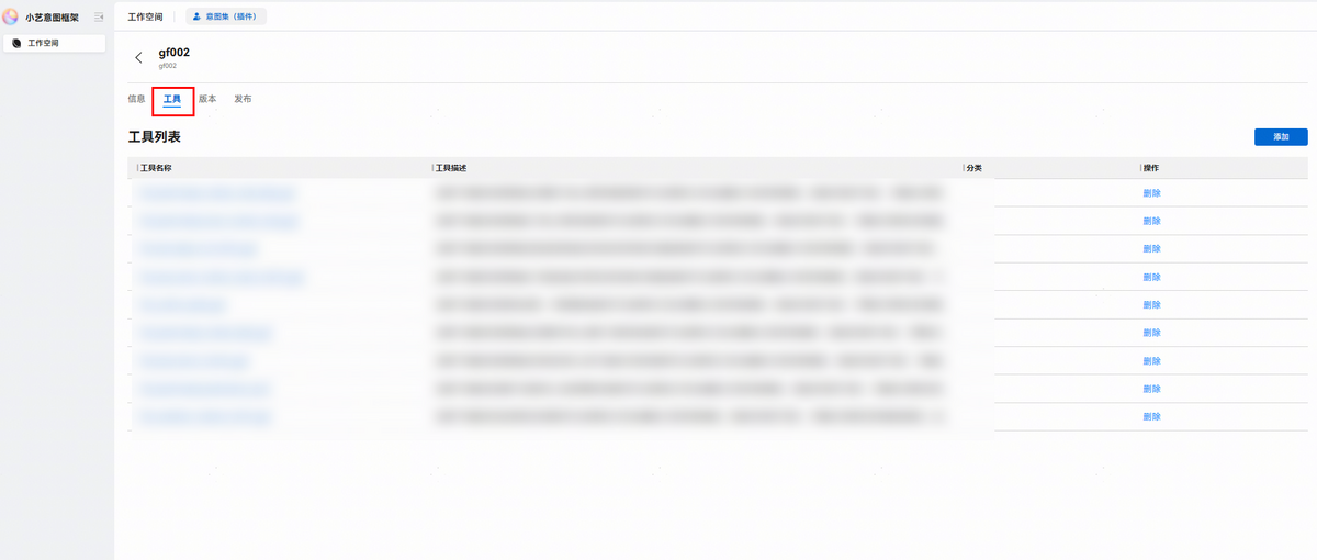 未出现工具列表:请等候几分钟重新进入,后台加载存在延时;如若重新进入后,仍未加载出工具信息,可能是插件的链接和鉴权信息配置错误。多次尝试后仍未解决,请通过邮箱联系华为意图框架同学(hagservice@huawei.com) 。