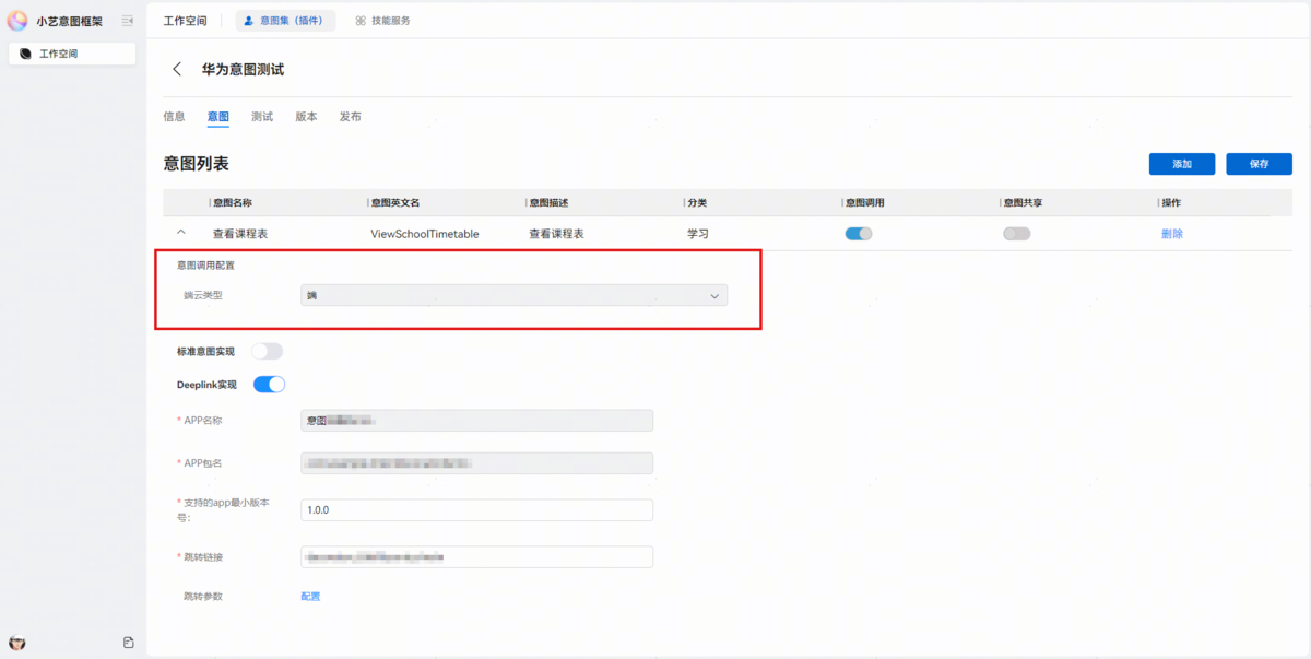 检查完成:如果特性依赖的所有意图都已列出,检查意图名称、意图调用配置和意图共享配置等是否正确,正确则点击“保存”,进入下一步。