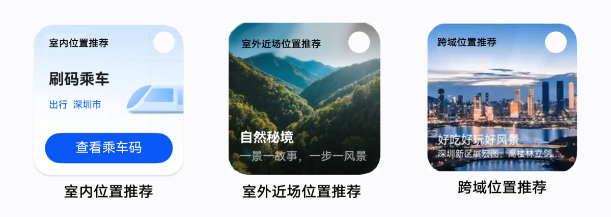 基于WLAN指纹和Cell触发的位置推荐场景,意图框架提供标准的卡片模板。卡片由华为侧统一配置。