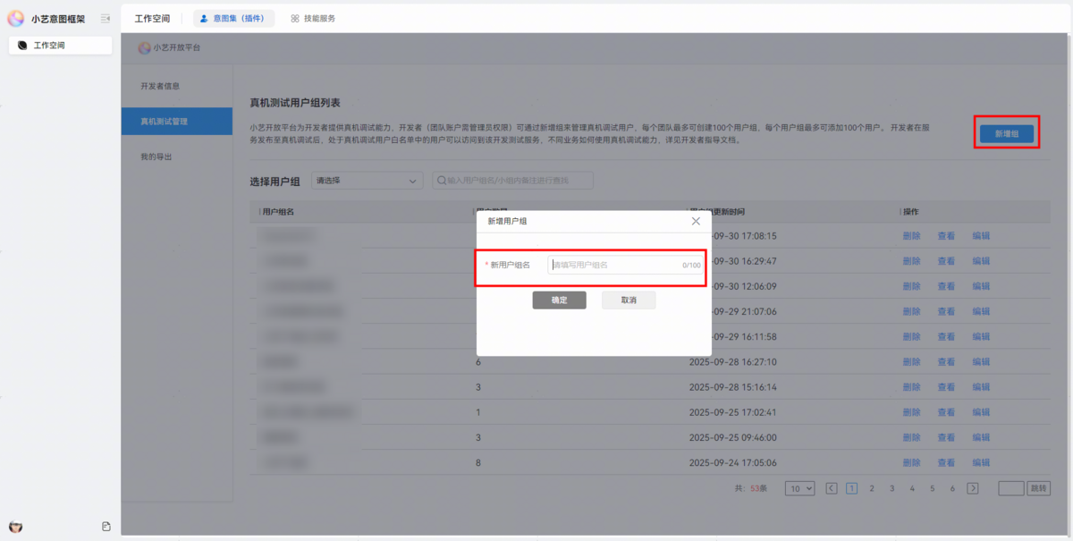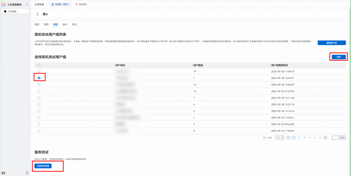 返回测试页签,选择所创建的真机测试用户组进行保存,点击开始测试准备,开发者即可通过HarmonyOS 6.0.0(20)版本及以上的设备在小艺进行端到端测试。