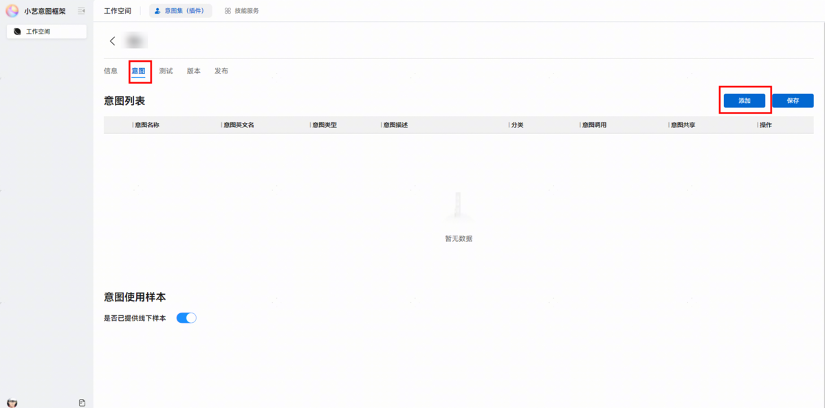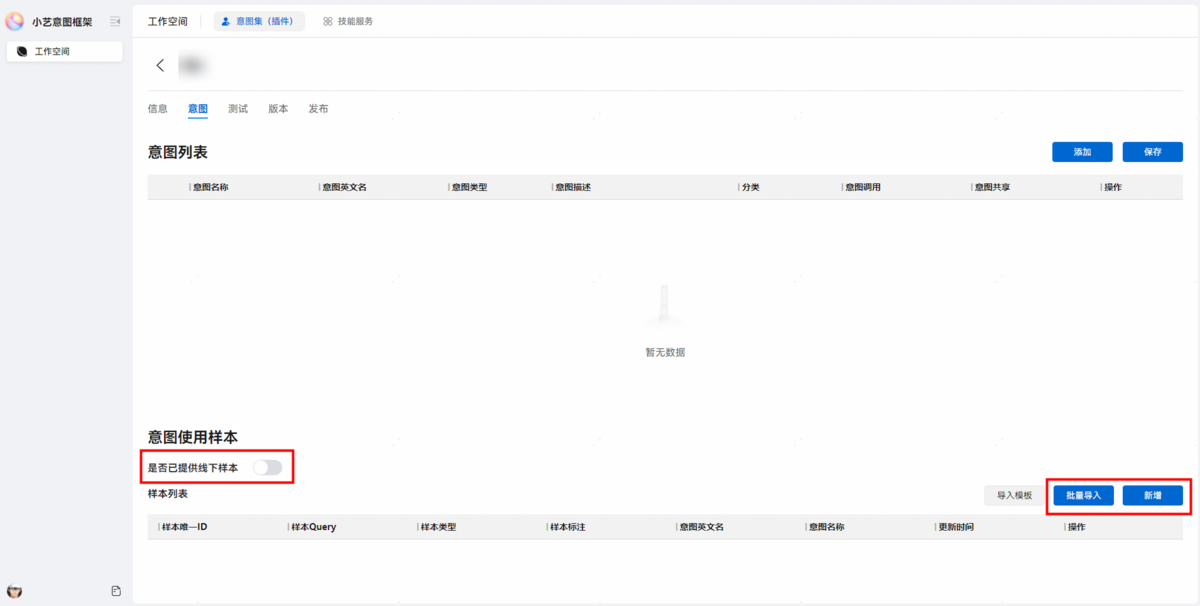 若无需添加意图使用样本,打开是否已提供线下样本开关即可。
