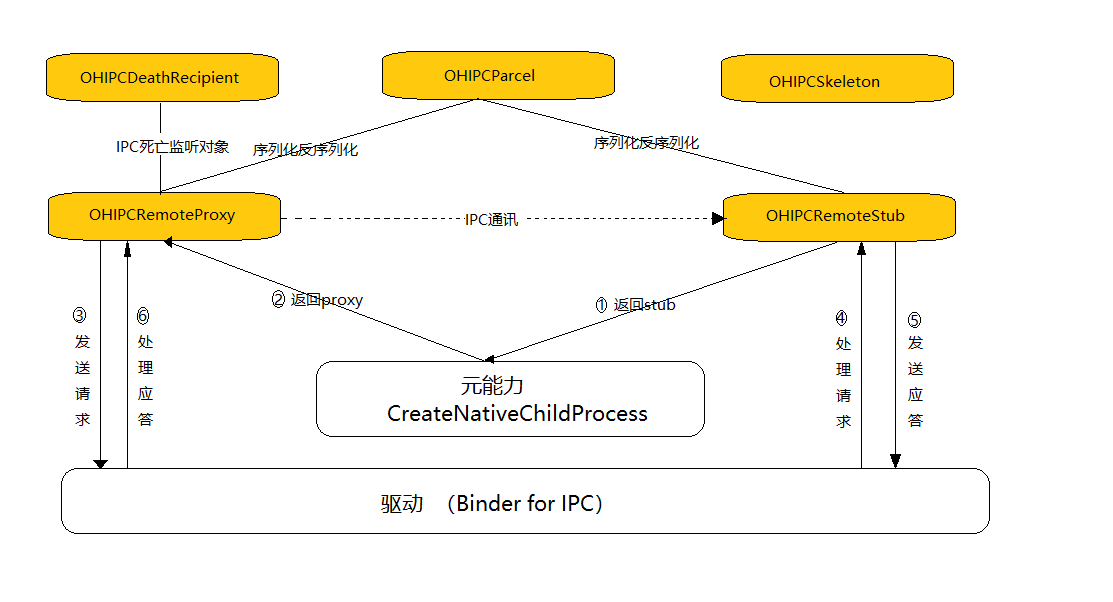 IPC让运行在不同进程间的Proxy和Stub实现互相通信。IPC CAPI是IPC Kit提供的C语言接口。