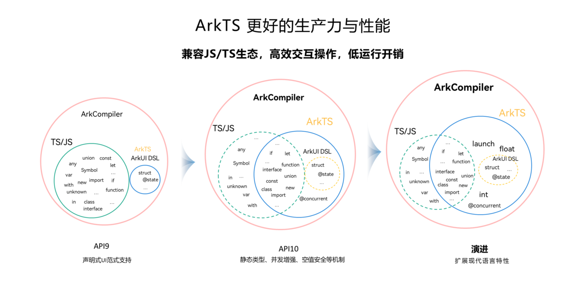 未来,ArkTS会结合应用开发/运行的需求持续演进,逐步增强并行和并发能力、扩展系统类型,以及引入分布式开发范式等更多特性。
