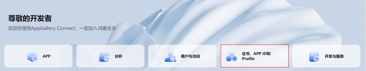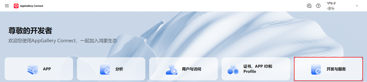 登录AppGallery Connect,选择“开发与服务”。