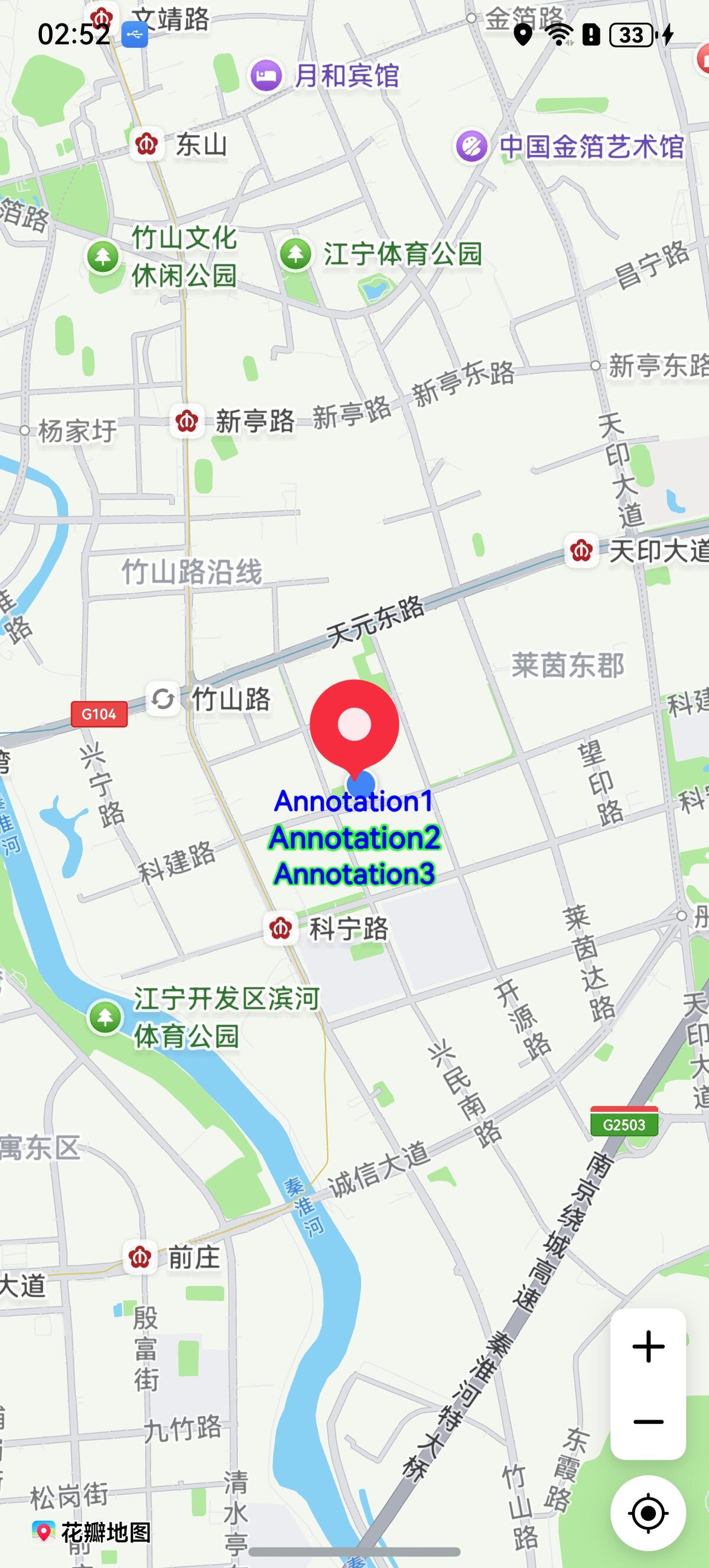 本章节将向您介绍如何开启和展示“我的位置”功能,“我的位置”指的是进入地图后点击“我的位置”显示当前位置点的功能。效果如下: