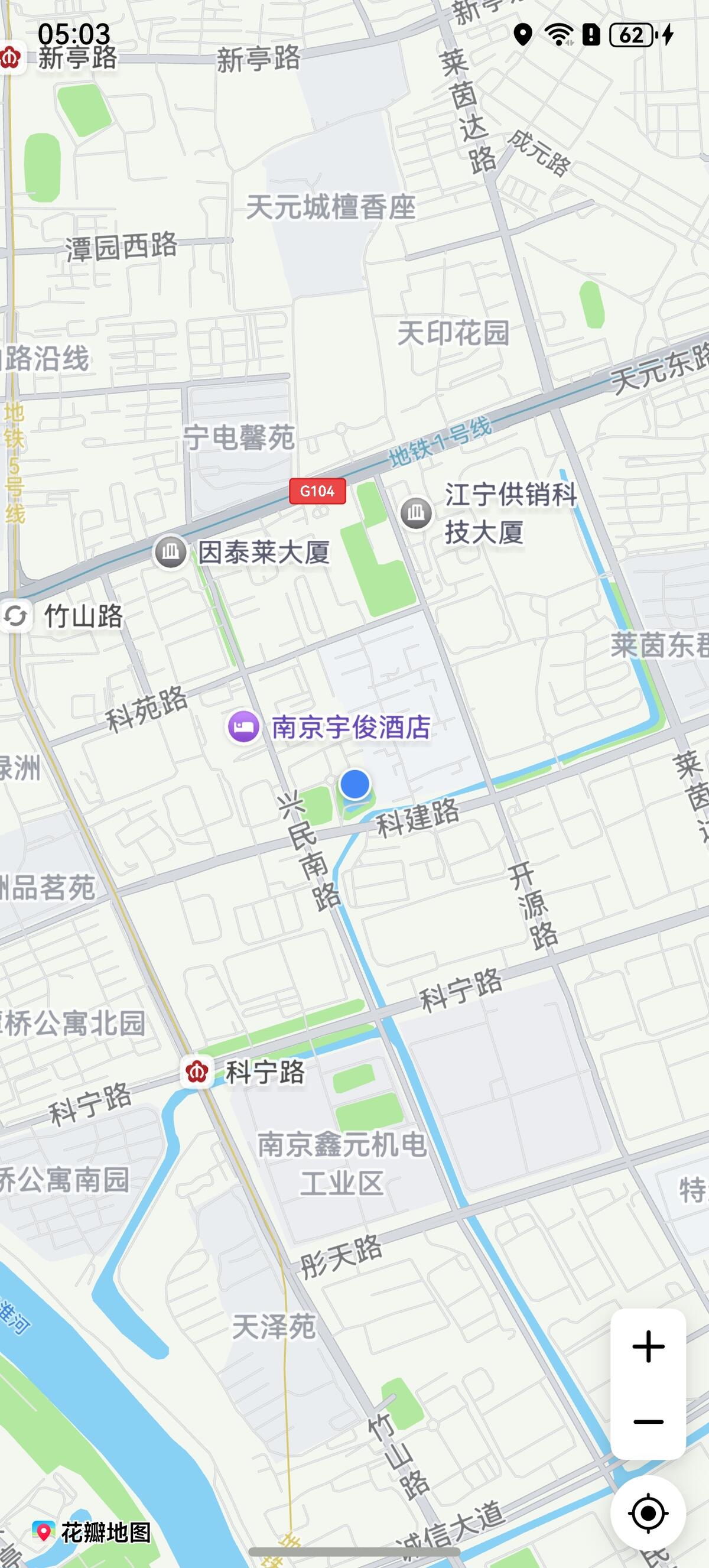 ,将会在屏幕中心显示当前定位,以蓝色圆点的形式呈现,效果如下图所示,效果根据获取到的用户位置会有变化。