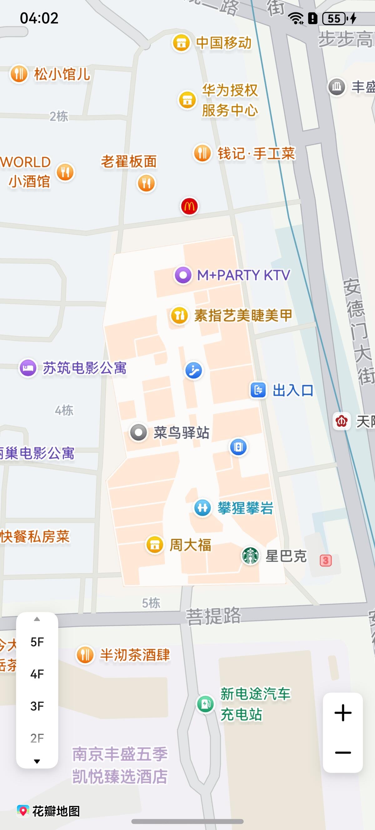 在地图初始化参数中设置将MapOptions中的indoorMapEnabled参数设置为true即可开启室内图功能,而且仅17级及以上地图层级可见室内图和楼层调节控件,通过左下角的楼层调节控件可以切换当前室内图楼层。