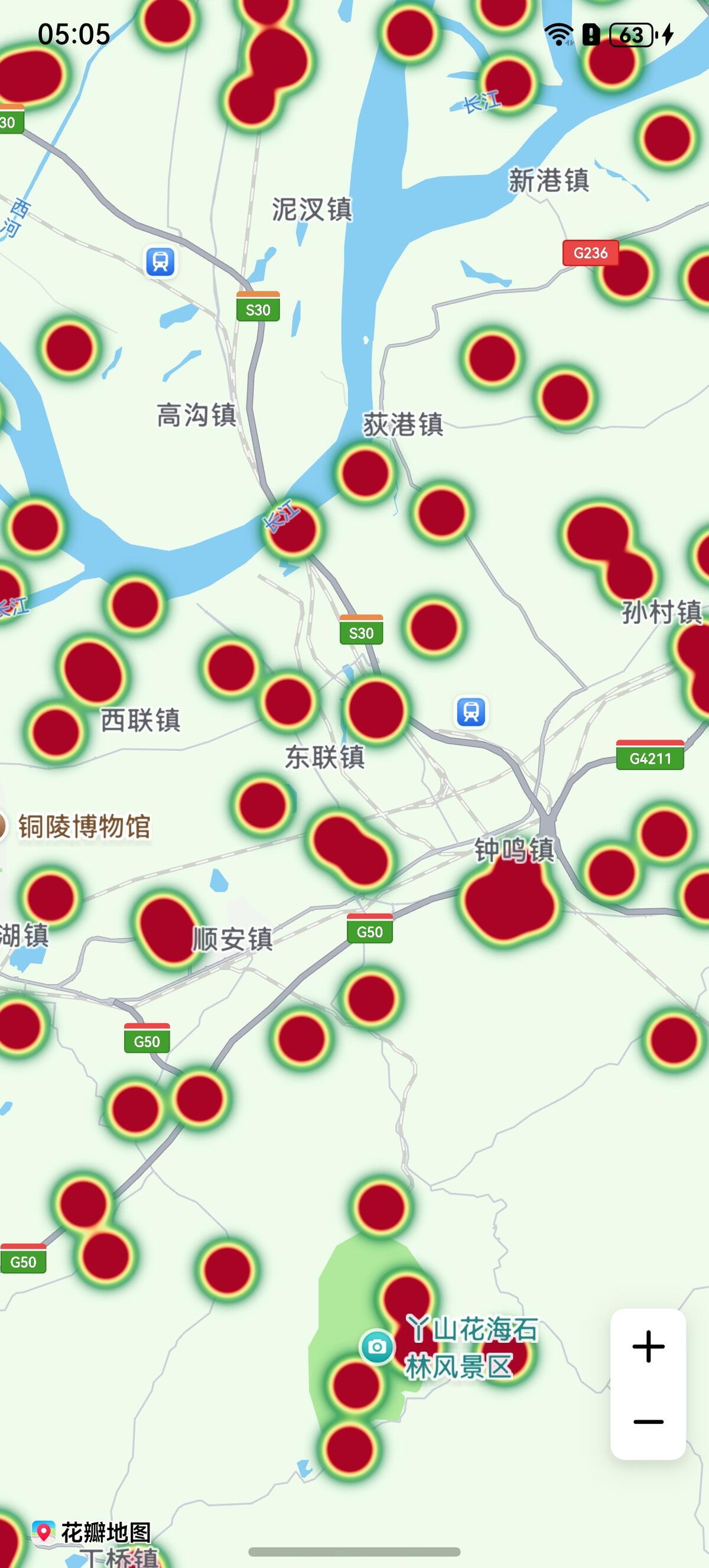 @Entry@Componentstruct HeatMapDemo {private TAG = "OHMapSDK_HeatMapDemo";private mapOption?: mapCommon.MapOptions;private mapController?: map.MapComponentController;private callback?: AsyncCallback<map.MapComponentController>;aboutToAppear(): void {this.mapOption = {position: {target: {latitude: 31.000000,longitude: 118.000000},zoom: 11}}this.callback = async (err, mapController) => {console.info(this.TAG, "mapCallback err=" + JSON.stringify(err) +"; mapController=" + JSON.stringify(mapController));if (!err) {this.mapController = mapController;let data: mapCommon.WeightedLatLng[] = [];// 生成500个随机坐标点,用于热力图数据for (let i = 0; i < 500; i++) {data.push({point: {longitude: 118.000000 + Math.random() * 1 - 0.25,latitude: 31.000000 + Math.random() * 1 - 0.25},intensity: 1});}let heatMapOptions: mapCommon.HeatmapParams = {id: 'heatmap0001',data:data,radius:20,intensity: {2: 1,5: 5,8: 10}}try {// 添加热力图await this.mapController?.addHeatmap(heatMapOptions);} catch (e) {console.error(this.TAG, `code:${e.code}, message:${e.message}`);}} else {console.error(`Failed to initialize the map, code is:${err.code}, message is ${err.message}`);}}}build() {Stack() {Column() {MapComponent({ mapOptions: this.mapOption, mapCallback: this.callback }).width('100%').height('100%');}.width('100%')}.height('100%')}}
