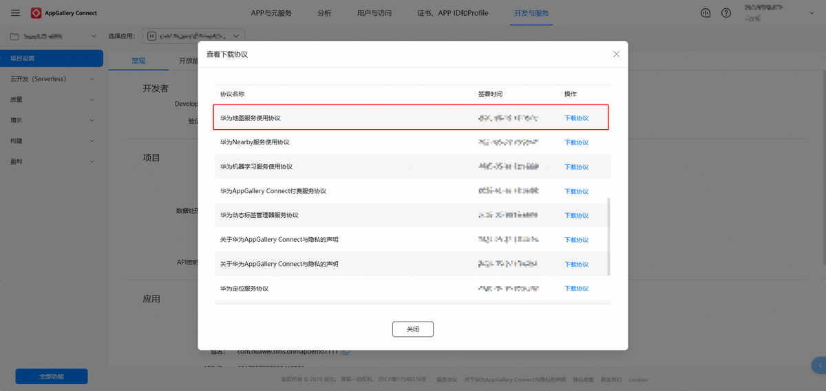 在查看下载协议中选择可查看“华为地图服务使用协议”。