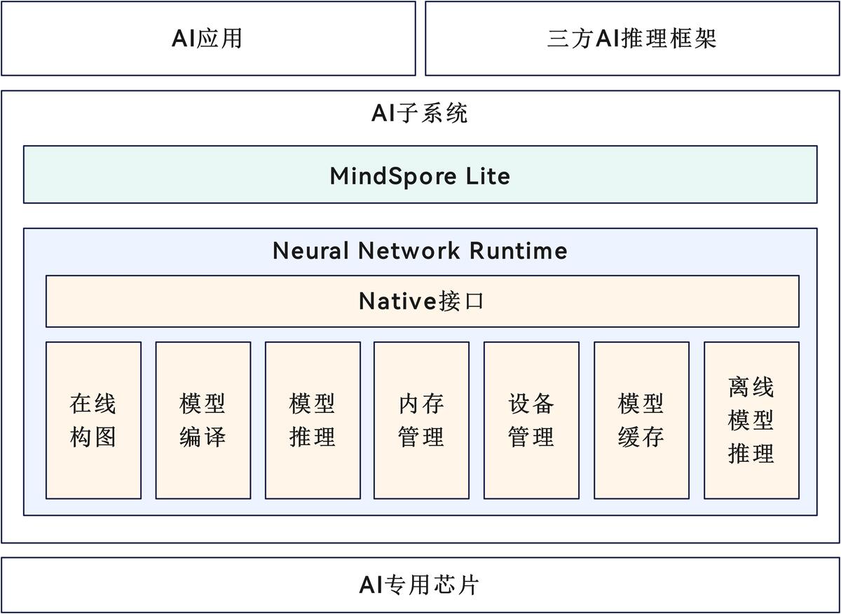 - Neural Network Runtime Kit:面向AI领域的跨芯片推理计算运行时,作为中间桥梁连通上层AI推理框架和底层加速芯片,实现AI模型的跨芯片推理计算。