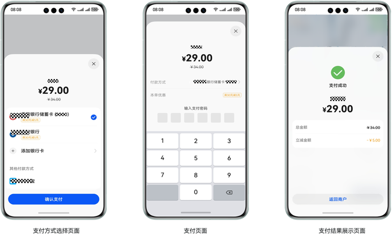 - Payment Kit客户端展示含华为支付方式的通用收银台,根据用户所选择的不同支付方式完成支付操作。