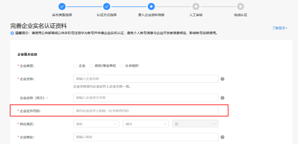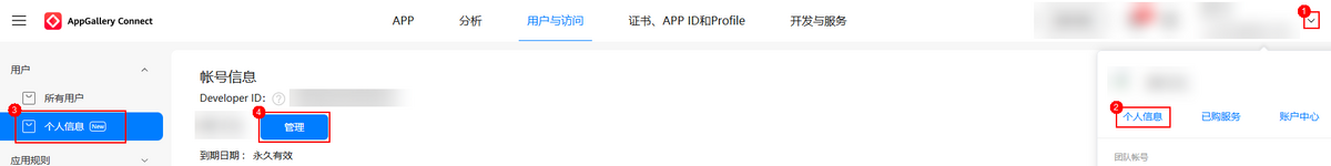 商户应用管理员实名认证(在AppGallery Connect “个人信息 > 管理 > 实名认证”查询)需为企业开发者。
