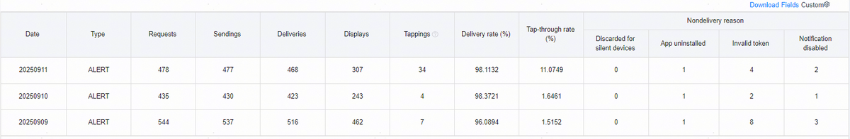 - 通知关闭:用户关闭了应用的消息通知权限的数量。