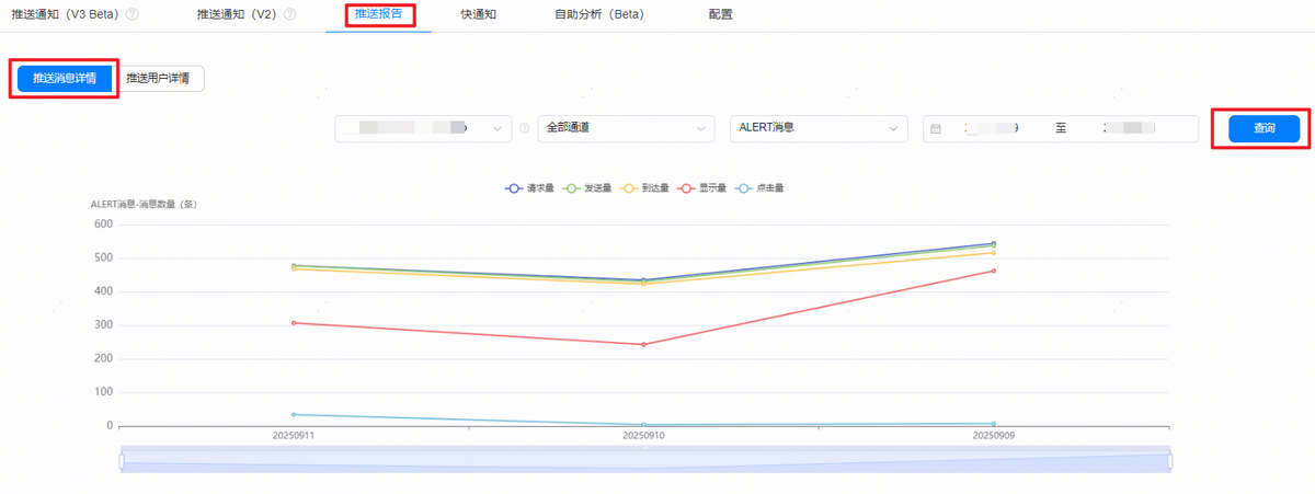 - 发送量:在请求量的基础上剔除不符合下发条件的消息数量,实际下发的消息数量。