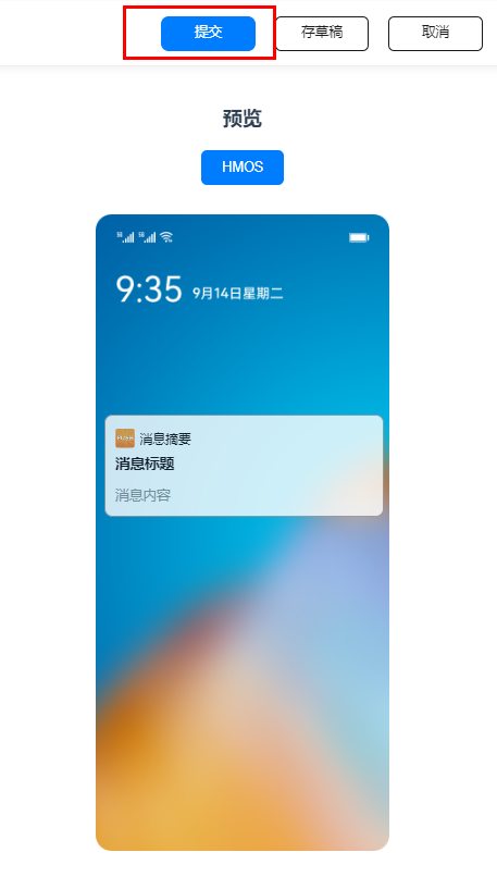 当您完成上述步骤后,点击右上方“提交”按钮即可推送消息。