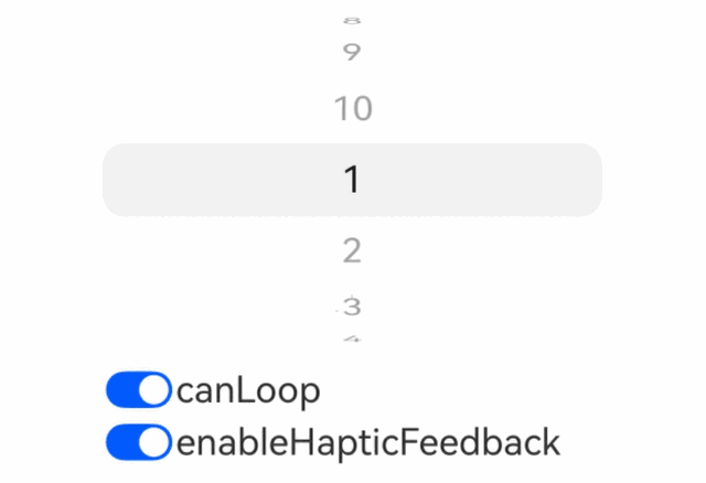 从API version 22开始,该示例通过点击按钮的方式实现切换UIPickerComponent容器的循环滚动和开启/关闭触控反馈功能。