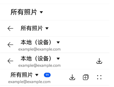 下拉菜单标题栏包含一个下拉菜单,可用于页面之间的切换;可用于一级页面、二级及其以上界面(配置返回键)。