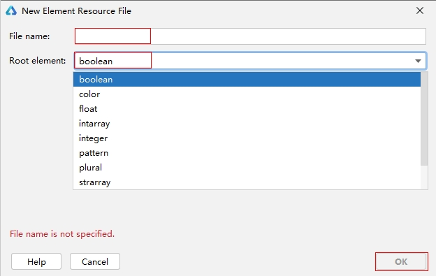 | element | 表示元素资源,以下每一类数据都采用相应的JSON文件来表征(目录下仅支持文件类型)。 - boolean,布尔型 - color,颜色 - float,浮点型,范围是-2^128到2^128 - intarray,整型数组 - integer,整型,范围是-2^31到2^31-1 - plural,复数形式 - strarray,字符串数组 - string,字符串,格式化字符串请参考API文档 | element目录中的文件名称建议与下面的文件名保持一致。每个文件中只能包含同一类型的数据。 - boolean.json - color.json - float.json - intarray.json - integer.json - plural.json - strarray.json - string.json |