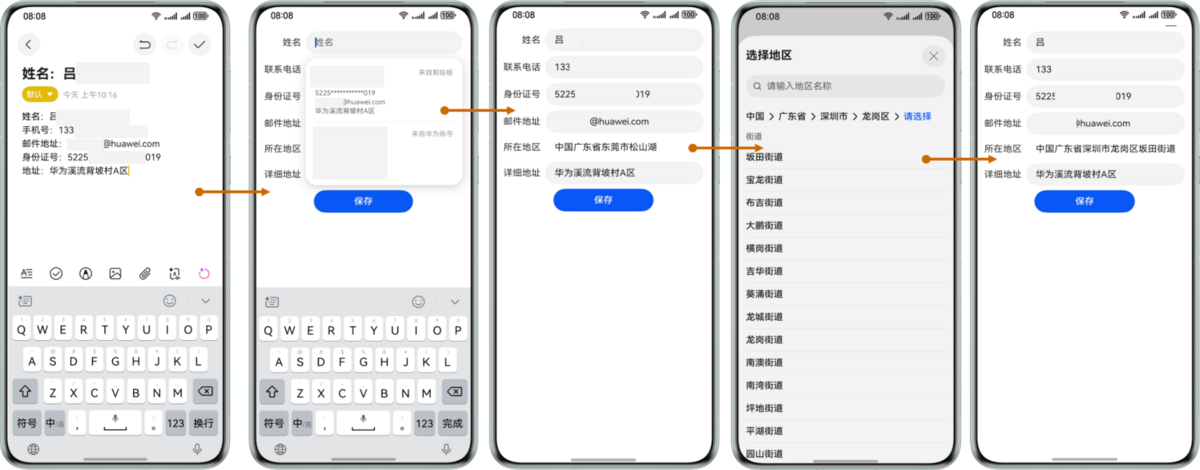 在填写地址表单场景时,当应用使用了所在地区的省市区选择器,需要开发者对表单中的地址字段进行开发。