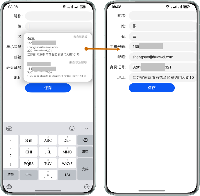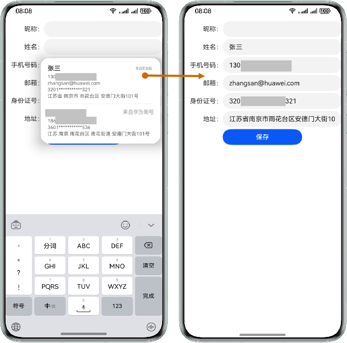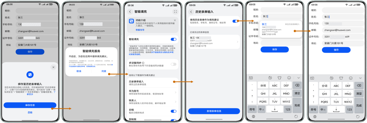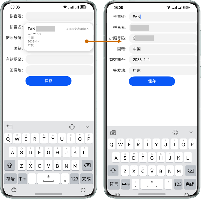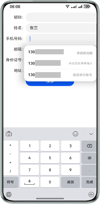 保存在应用/元服务中填写的表单信息,用于后续表单填充推荐。