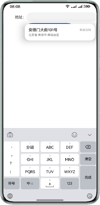 当表单中的输入组件仅配置了ContentType为“FORMAT_ADDRESS”(全量地址)时,会从日程信息中获取2小时内的数据进行填充推荐。