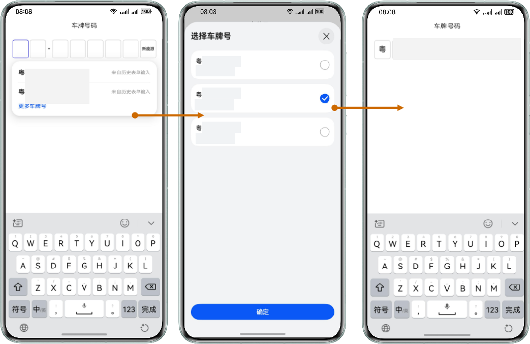 从5.1.0(18)开始,支持智能填充的推荐车牌号场景。