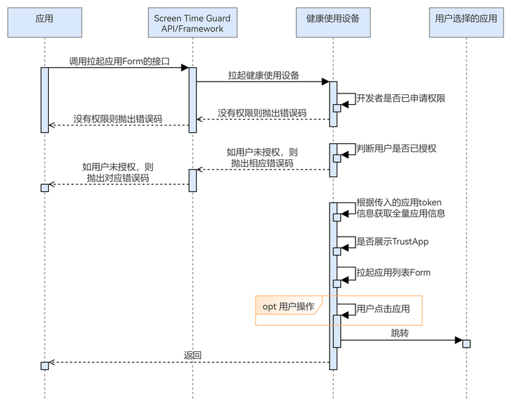- 若状态为未授权,则抛出对应错误码;若状态为已授权,应用将根据传入的应用token信息获取全量应用信息,判断是否展示TrustApp,并拉起应用列表Form。