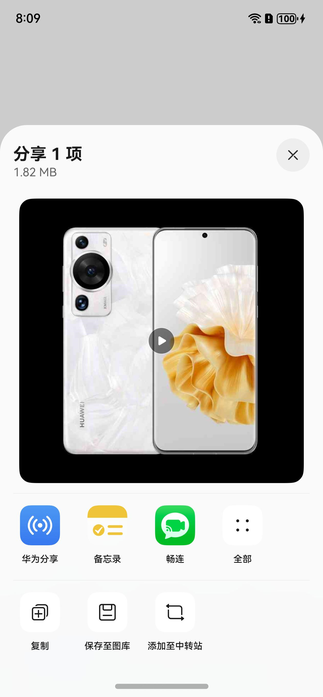 视频类型分享支持将一个或多个视频分享到目标设备/目标应用。
