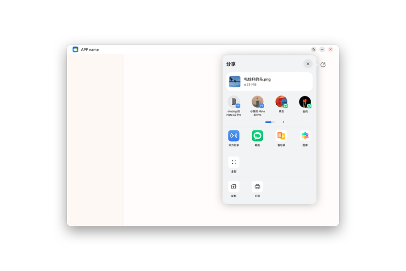 - 宿主应用可以分享一段文本、一个文件或一条备忘录到其他应用。