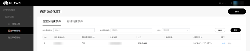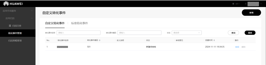 新增、修改、删除自定义转化事件时,相应的操作会被运营人员在后台审核通过或驳回,仅被审核通过的自定义转化事件才能生效。