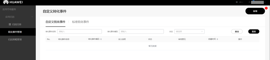 点击右上角“新增”按钮,进入新增自定义转化事件页面。