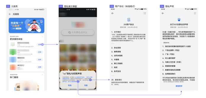 - 应用/元服务调用requestAppPrivacyConsent接口拉起标准化隐私弹框。