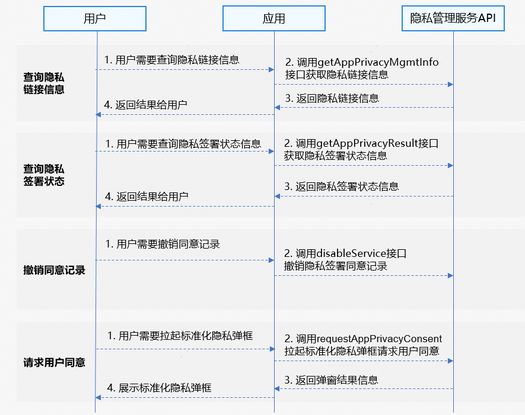 隐私管理服务为使用标准化隐私声明托管服务的应用/元服务提供查询隐私链接、查询隐私签署状态、撤销同意记录和拉起标准化隐私弹框请求用户同意功能。