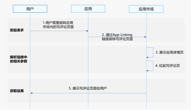 - 您可使用App Linking链接的方式拉起应用市场写评论页,通过拼接应用市场App Linking链接,在应用中调用或网页中点击App Linking链接在应用详情页拉起写评论页,用户可以在页面内进行评分与评论。