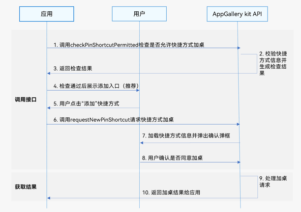 - 检查通过后应用给用户展示添加快捷方式入口;
