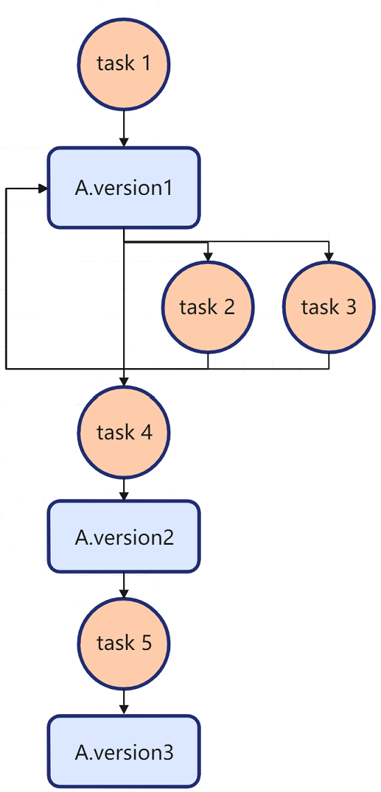 - task2/task3与task4构成Consumer-Producer依赖,即:task4需要等到task2/task3读完A之后才能写A。