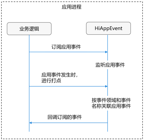 HiAppEvent通过事件领域和事件名称关联应用事件,并通过addWatcher接口设置的回调方式将事件回调给应用。