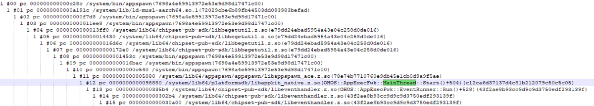 抓栈功能目前只支持ARM64架构,抓栈结果为解析后的混合栈信息,包含native帧和JS帧。此日志为避免过度消耗系统资源,一个进程一天至多采集一次。