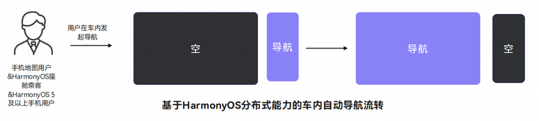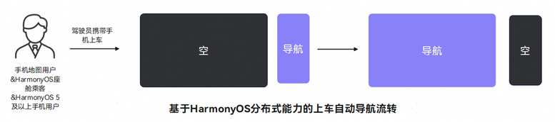上车导航自动流转:用户使用手机地图应用发起驾车导航后上车,手机上的导航数据会自动流转至车机。