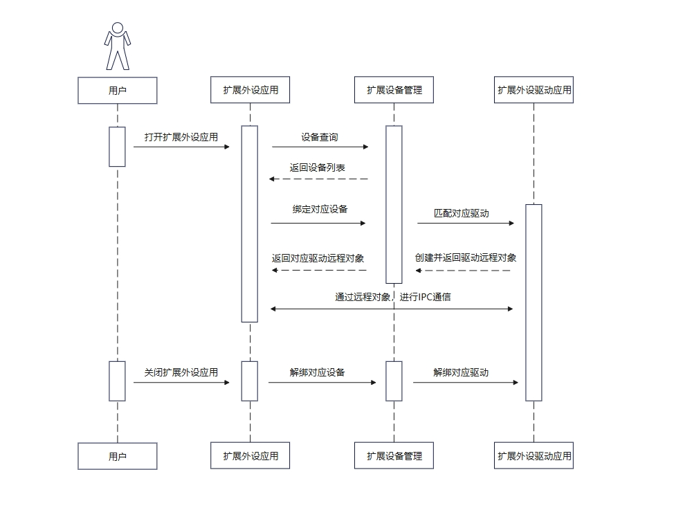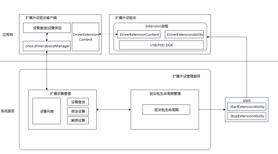 - 扩展驱动框架支持扩展外设驱动生命周期管理,面向扩展设备应用提供扩展外设查询绑定能力接口。