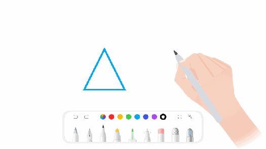 在连续的一笔绘制结束时,手写笔/手指在屏幕上停顿一定时间后,将触发一笔成形功能,该功能会将这一笔绘制内容识别成规整图形,手写套件已默认开启一笔成形功能,您也可以在应用中单独集成一笔成形功能。Pen Kit支持以下图形的识别: