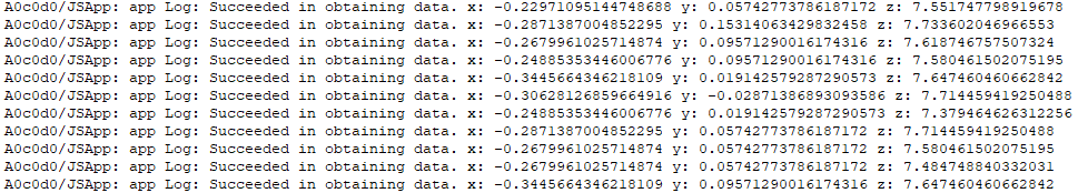 通过on()接口,实现对传感器的持续监听,传感器上报周期interval设置为100000000纳秒。