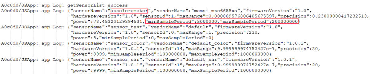 try {sensor.getSensorList((error: BusinessError, data: Array<sensor.Sensor>) => {if (error) {console.error(TAG + 'getSensorList failed');} else {console.info('getSensorList success');for (let i = 0; i < data.length; i++) {console.info(TAG + JSON.stringify(data[i]));// ...}}});} catch (error) {console.error(TAG + 'get list exception, code:' + error.code + 'msg:' + error.message);console.error(TAG + 'get list exception, msg:' + JSON.stringify(error));}