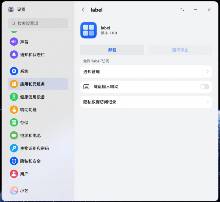 路径二:设置 > 应用和元服务 > 某个应用 > 权限类型(如键盘输入辅助)