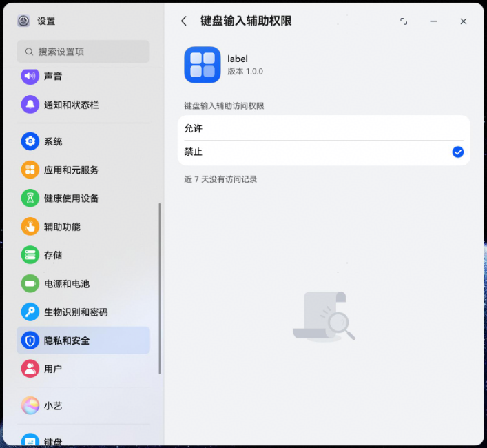 路径一:设置 > 隐私和安全 > 权限类型(如键盘输入辅助) > 某个应用